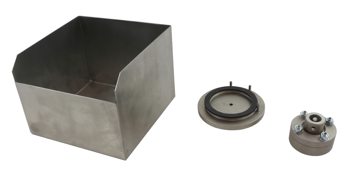 to EN1288-5 and DIN52292-1 Bottom ring radius 45 mm, top ring radius 9 mm Sample radius 50 mm Max. load 5 kN Coupling Af20 Steel, nickel-plated Incl. steel container |