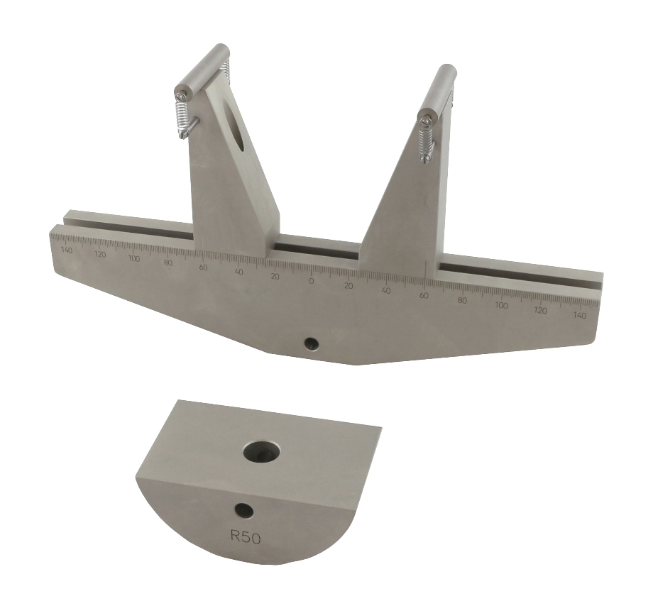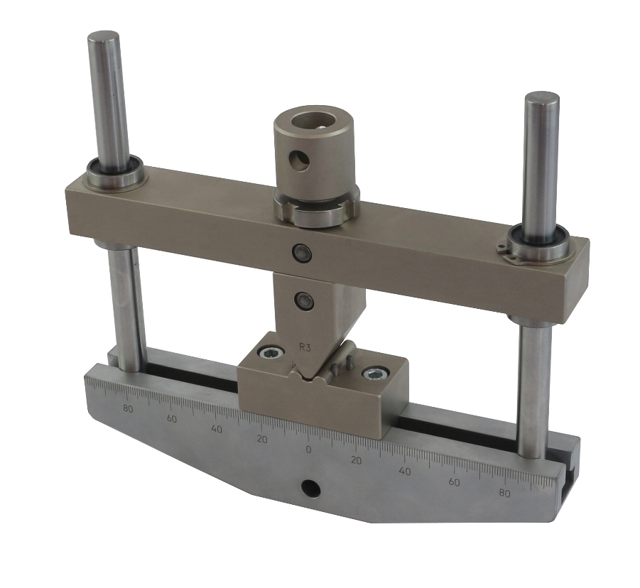 TH238-200-CR5-H80-OR5-H50- Special bend test fixture bending beam 200 mm long Coupling Am317 Max. load 10 kN Anvils with milled radii 5 mm |