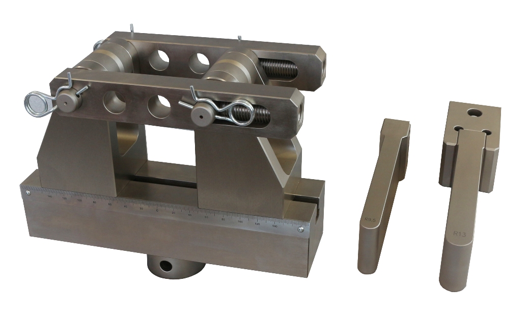 THS260-100-500-Dx-OR5-10-15- Bend test fixture for metal according to GOST6996, GOST14019 Max. load 100 kN. Coupling Af40 Incl. punches with 5, 10, 15 mm radii Steel, nickel-plated |