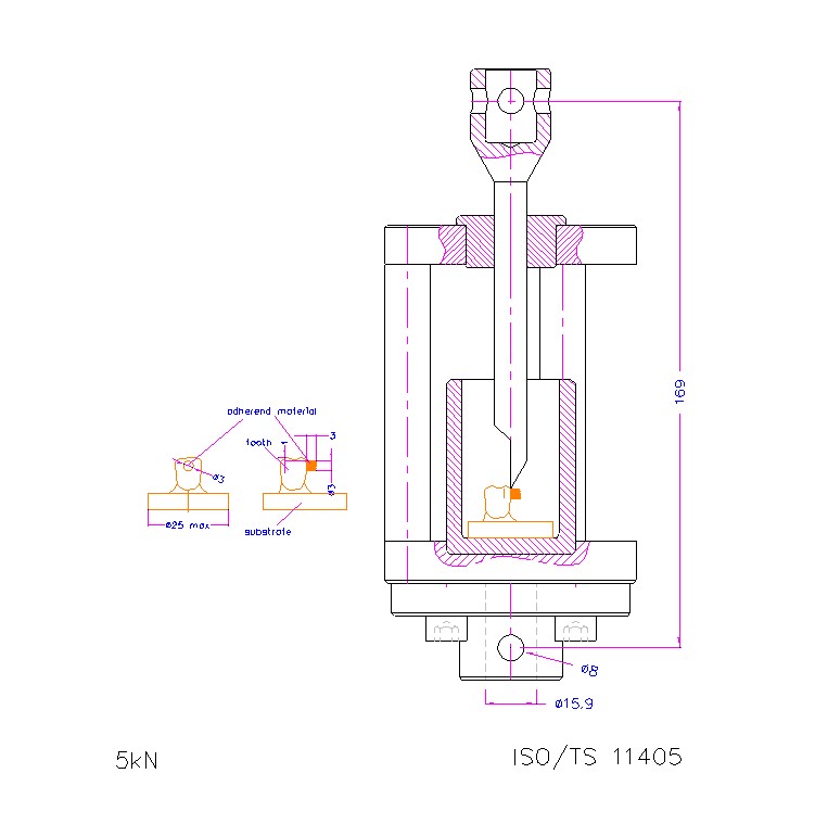 Special fixture to measure shear force of the teeth according to ISO/TS11405