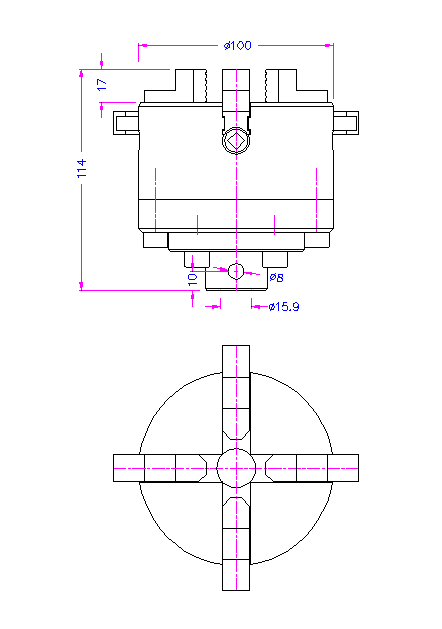 4x einzeln verstellbare Backen 100 mm Ø