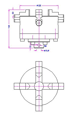 4x individually adjustable jaws 125 mm Ø