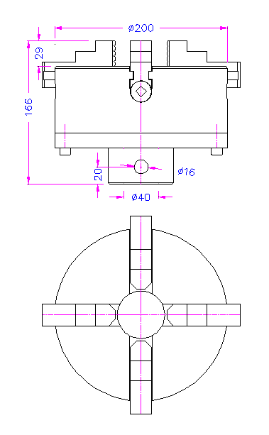 4x individually adjustable jaws 200 mm Ø