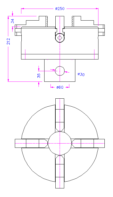 4x individually adjustable jaws 250 mm Ø