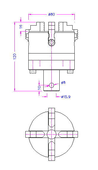 4x einzeln verstellbare Backen 80 mm Ø