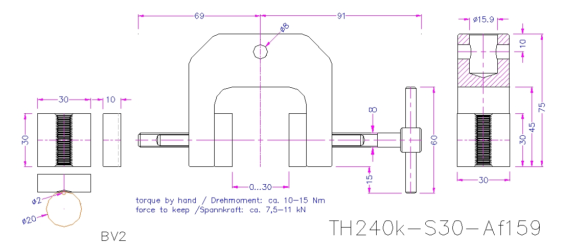 TH240k-S30 U-form vise grip, tensile force 1 kN Schraubspannkopf U-Form, Zugkraft 1 kN |