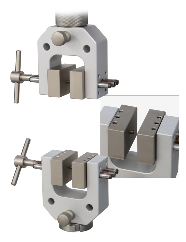 TH240k-S20+B40-D3 Special jaws with dowel pin 3 mm Ø and countersink hole suitable for biaxial stress-and-strain tests on this samples