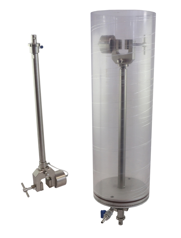 THS648-D200xH580-RMV TH240k-S20-A4-Af159 THS521-Am158-Am1665-D21-L450 Special Makrolon water bath Inner height 580 mm, Ø 190 mm Incl. stainless steel pneumatic grips with pull rods Temperature range 0 … +280°C Max. load 1 kN Clamping surface 30x30 mm Coupling Af159 |