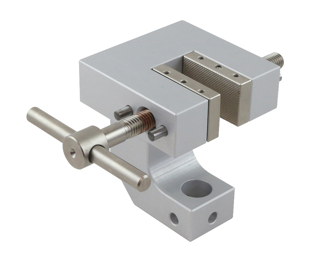 With a quick-release lever How to clamp a sample with a quick-release lever, see video How to set jaw opening with a quick-release lever, see video