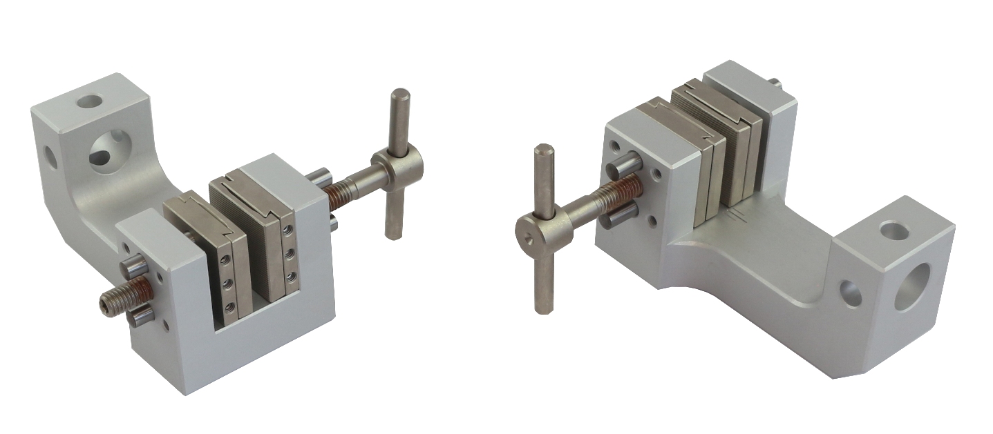 TH56k+BP Screw action grip for plastics, textiles, paper, metal foil, aluminium, brass, etc. Tensile force: 1 kN Clamping force: 5 kN at 4 Nm torque Aluminium, anodised