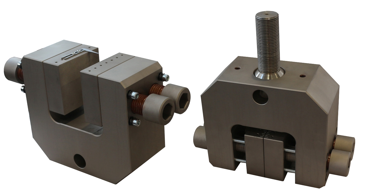 THS668-W110-2scr-F50+BP Vise grip For samples 44 mm Clamping surface 100 x110 mm Coupling Af60/30-35 mm Max.load 50 kN Steel, nickel-plated Temperature range: 0...+70°C