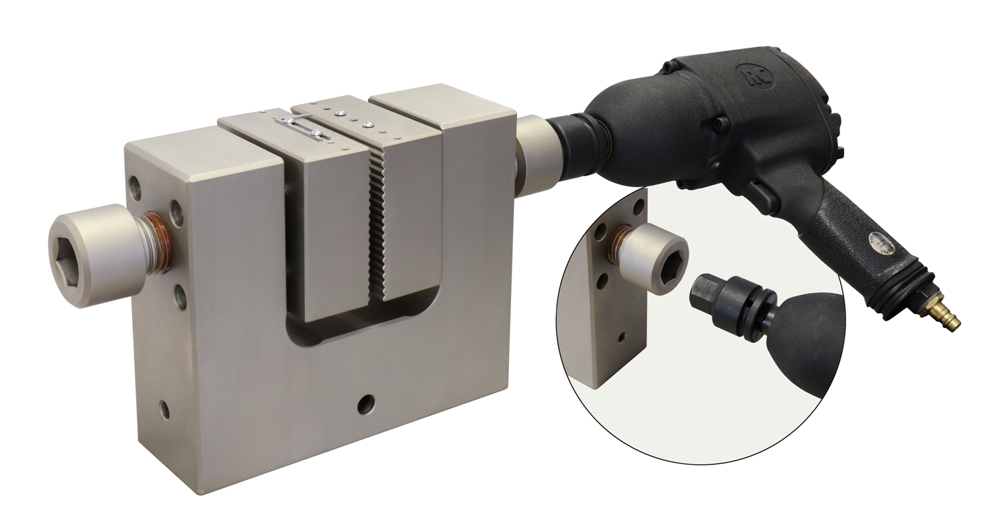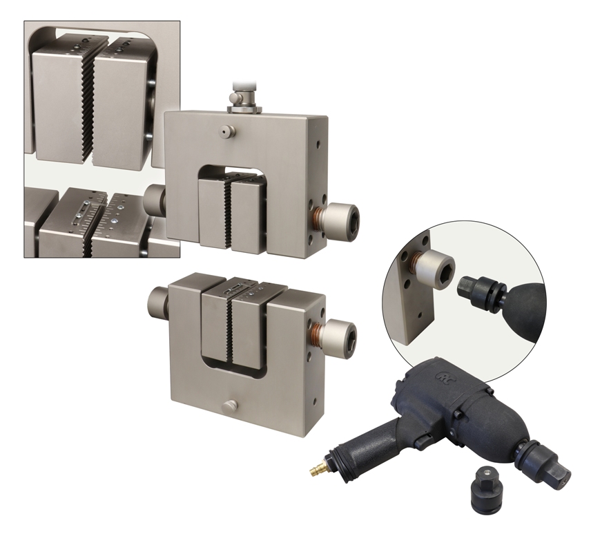 THS668-W80-1scr+BW100x100 Vise grip For samples 0-16 mm Clamping surface 100x100 mm Coupling Af318 Max. load 100 kN Steel, nickel-plated Temperature range: 0...+70°C