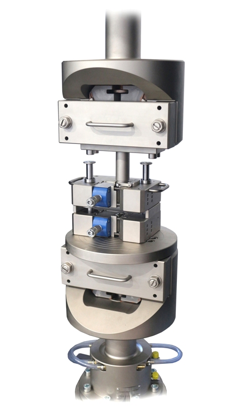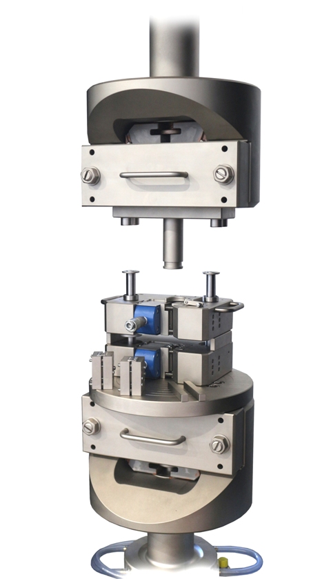 THS321-250c-Hy-L122-L416 Hydraulic wedge grips, max. load 250 kN with a mounted hydraulic combined loading compression test