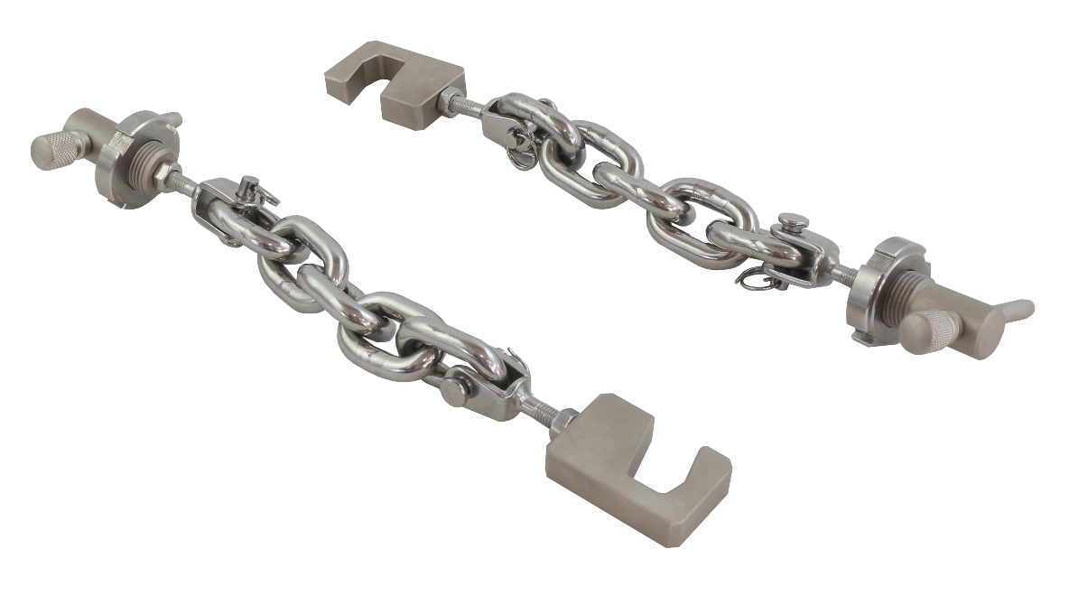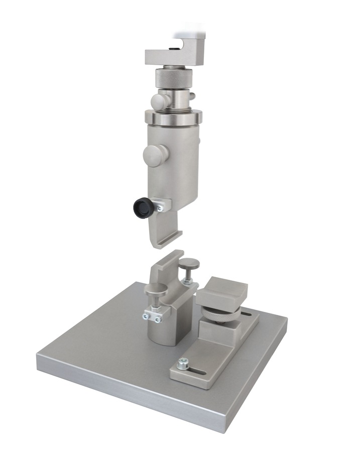 THS980-10-V3+TH231-2-K-Af159 Special hook grip with a bottom sample holder 2 mm diameter hook with a chain Bottom sample holder with an opening 30x150 mm Coupling Af159 Steel, nickel-plated + aluminum, anodized Bookbinding thread testing |
