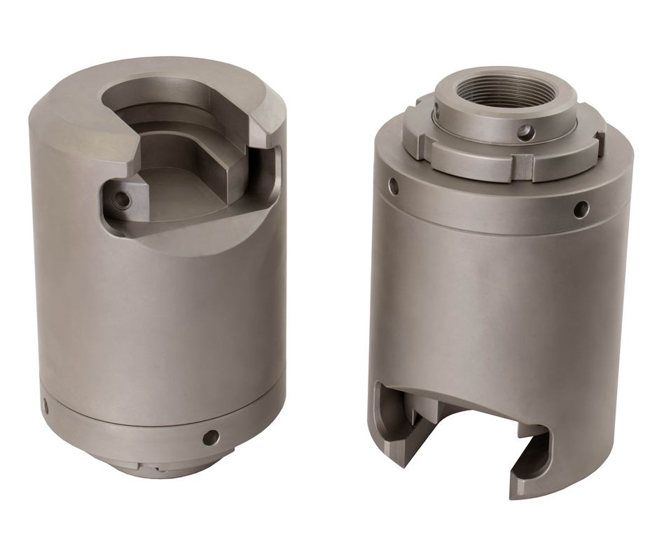THS822-220-GT-M45x1.5 THS327-100-AmM45x1.5 Special chuck grip with universal-joint adapter incl. 1 pair of carriers Max. load 100 kN Steel, hardened, nickel-coated Coupling M45x1.5 mm |