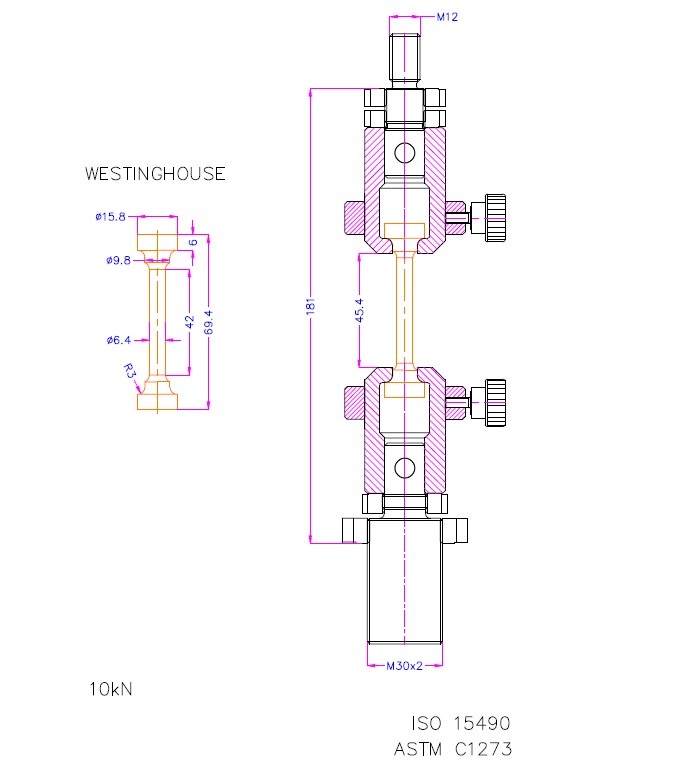test fixture for fine ceramics according to ASTM-C1273 and ISO15490