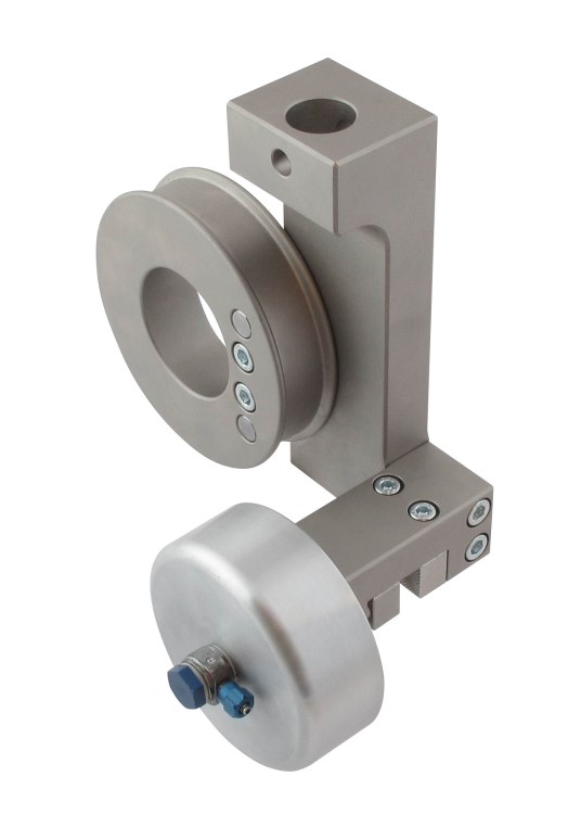 TH76-20-Af159 fine wires, narrow ribbons, etc. Max. sample size: 9 mm Ø Min. sample length: 800 mm Capstan (bollard) 93 mm Ø Max. load 20 kN Steel, nickel-plated Coupling Af159 Temperature range: -40...+280°C |