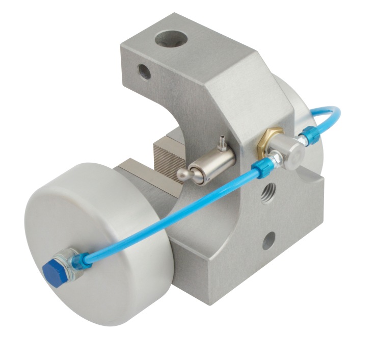 TH56g+2Ko Pneumatic grip with 2 pneumatic rods Max. load 2.6 kN (7 bar) Aluminium, anodized Temperature range: 0 … +70°C Coupling Af159