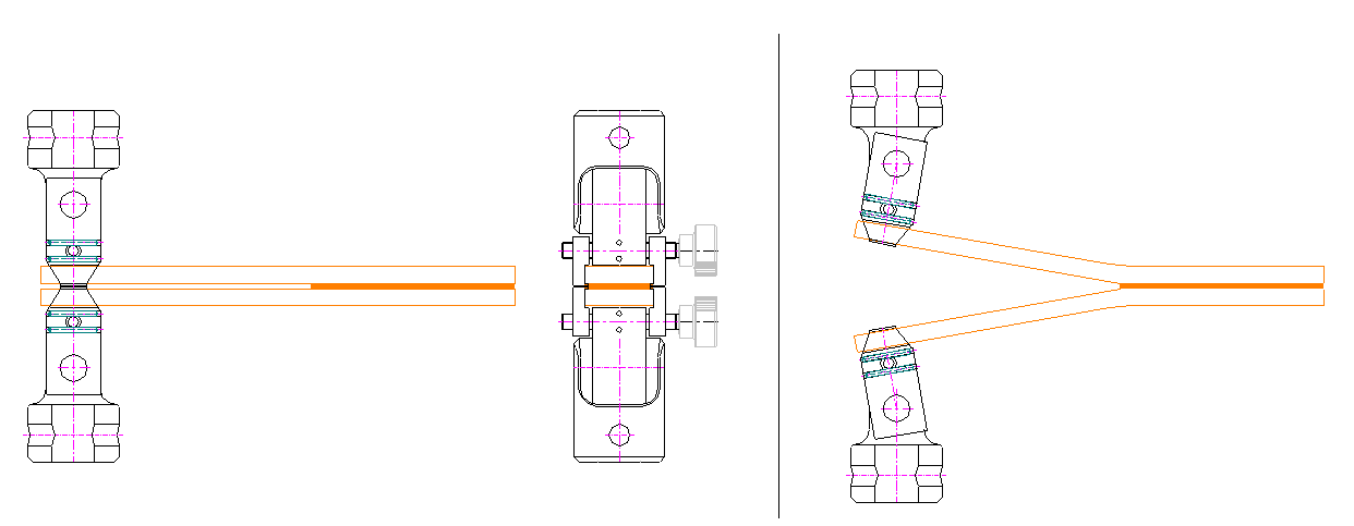 fiber-reinforced composite materials by clamping the ends of a V-notched