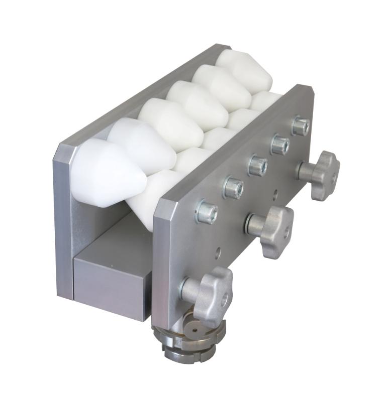 trays Aluminium, anodized, nylon Jaw width 290 mm Sondervorrichtung zum Testen von Eierverpackungen |