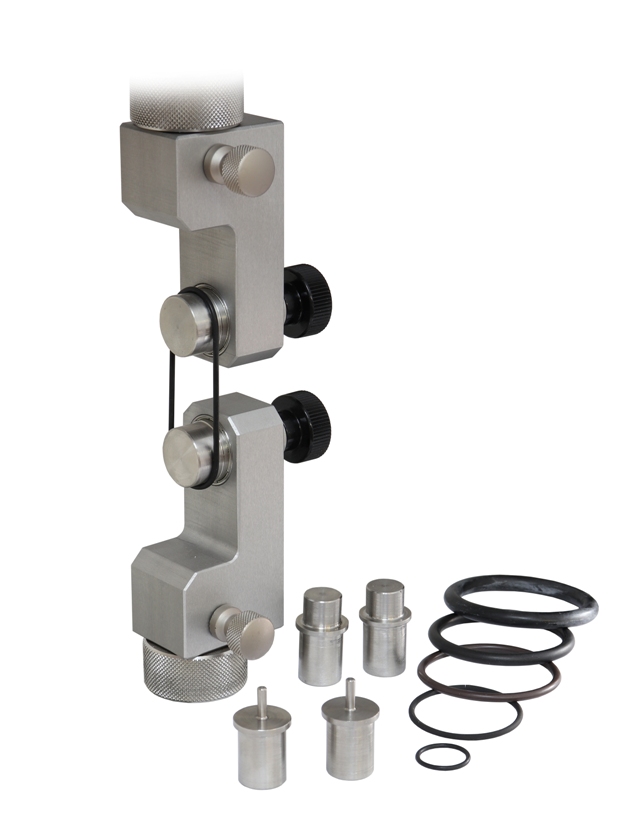 tensile strength tester for standardized rubber O-rings. Rollers turn at different speed according