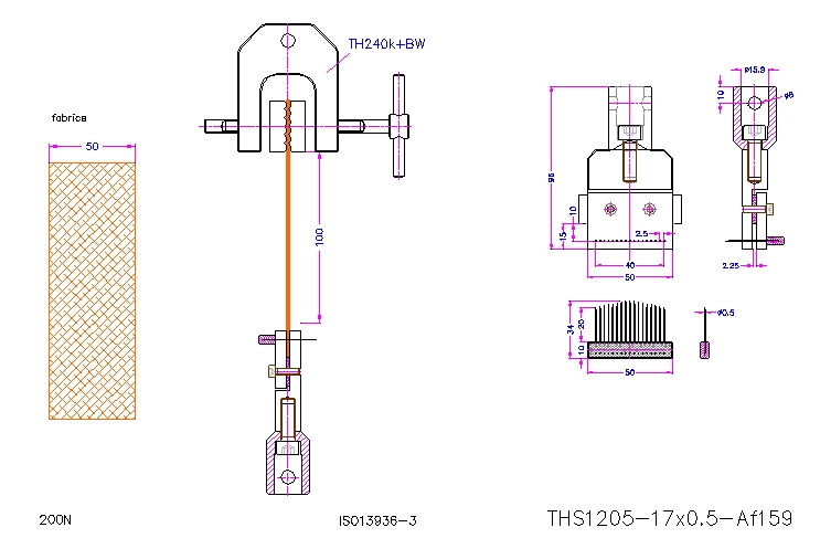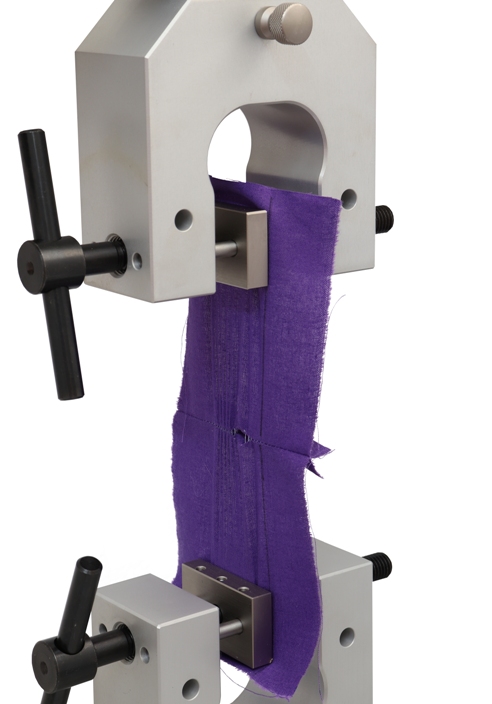 ISO13936-1 Fixed seam opening method. Max. tensile force 5 kN Blank (smooth) jaws, clamping