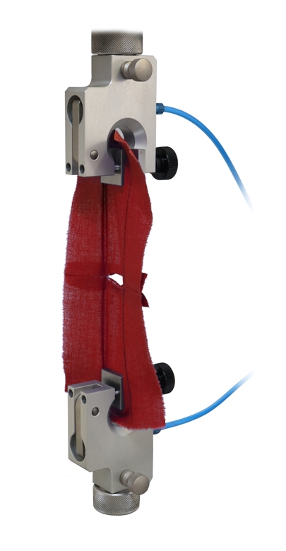 TH229+B25x50+B25x25-ASTM-D1683 according to ASTM-D1683 Pneumatic grip Blank (smooth) jaws 25x50 mm and 25x25 mm Versagen in genähten Nähten von Geweben gemäß ASTM-D1683 |