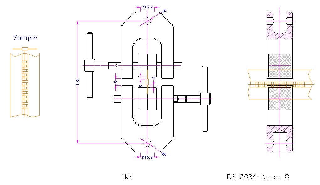 TH240k+BP25.4-Af159-BS3084- Lateral strength test fixture for fasteners according to BS3084