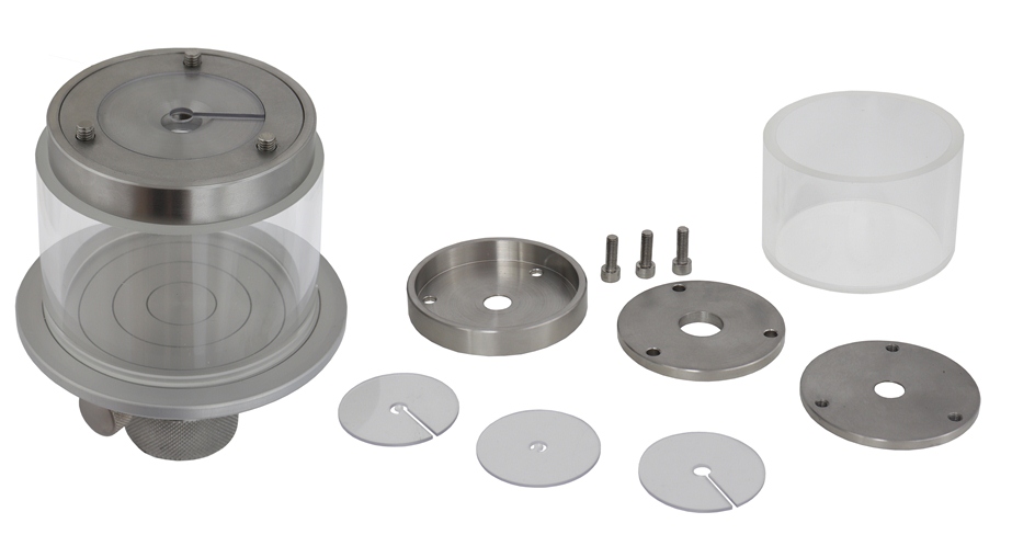 Test fixture for coring testing of Huber needles, according to ASTM-F3212 Max. load 1 kN Stainless steel V2A, polycarbonate Coupling Af159