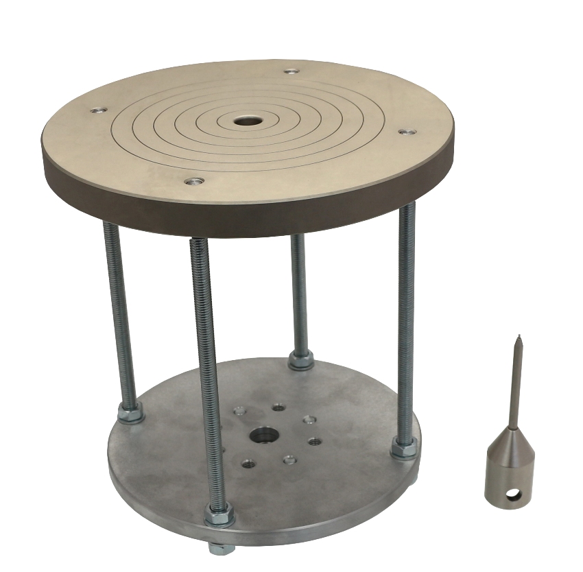 according to ASTM-F2412 Steel pin, 1 mm Ø tip Lower base: 196 mm Ø x 220 mm Hole in the base 12.7 mm Steel + aluminium Coupling Af159 |