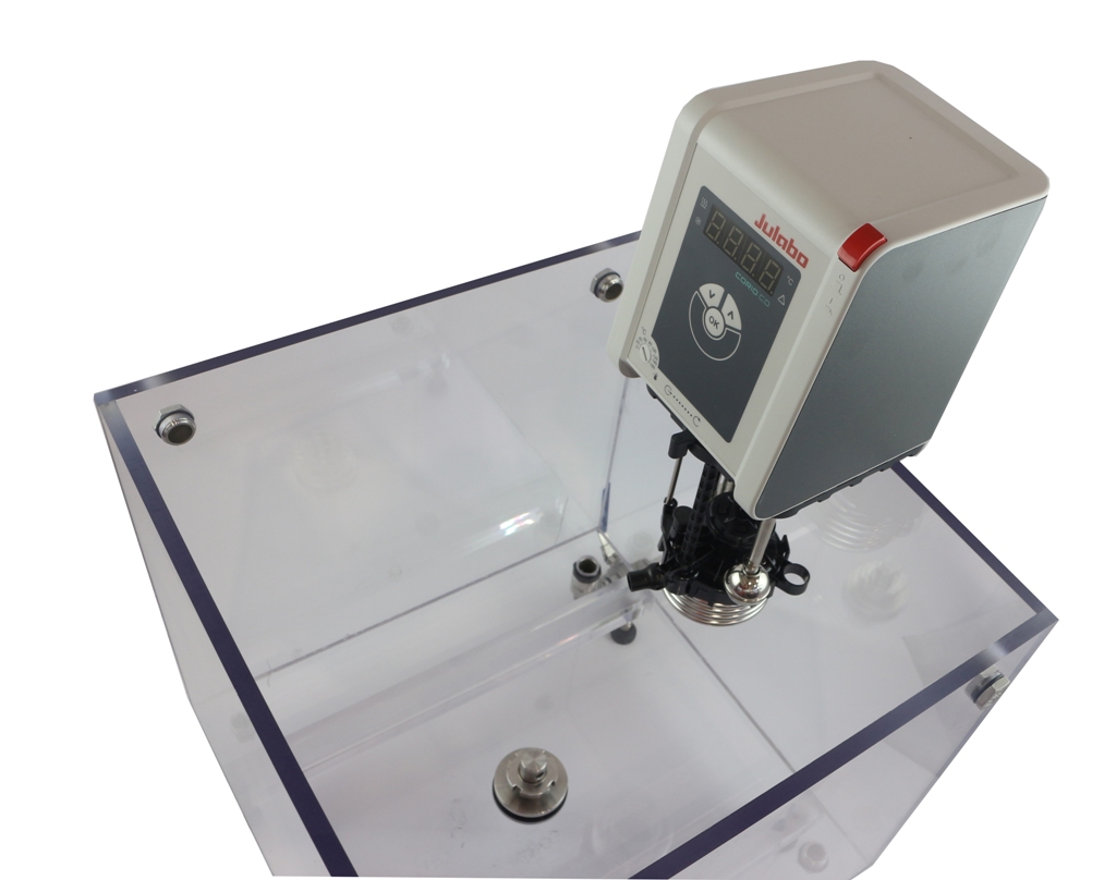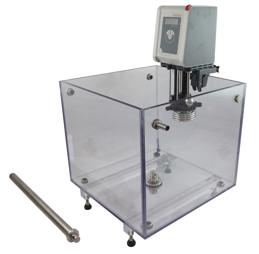 liquid bath with heating +37°C External dimensions 400x400x350 mm External coupling Af20 Am158 coupling to connect grips Drain hole in the bottom Incl. upper pull rod adapter THS521-Am158-Af159, stainless
