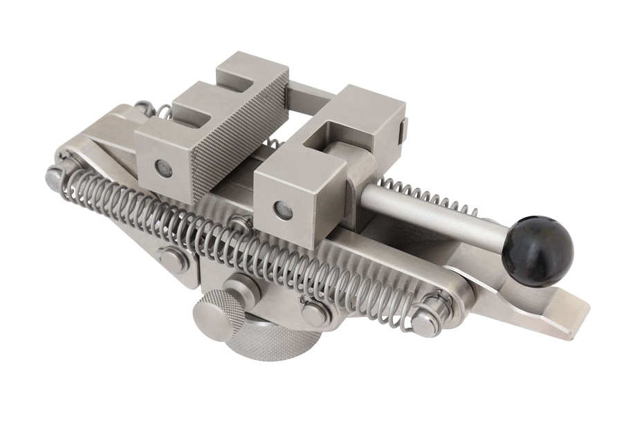 With special pyramid jaws, clamping surface 20x100 mm (W x L)
