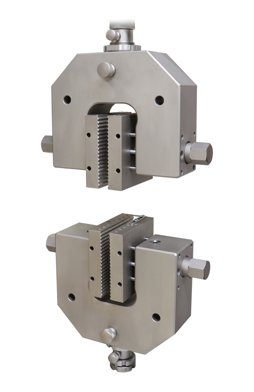 THS90+BW+B25.4x25.4+B50.8x25.4-Af3816 Screw action grip With blank jaws 25.4x25.4 mm and 50.8x25.4 mm (ASTM-D4632 geotextile grab test) Coupling Af38/16 |