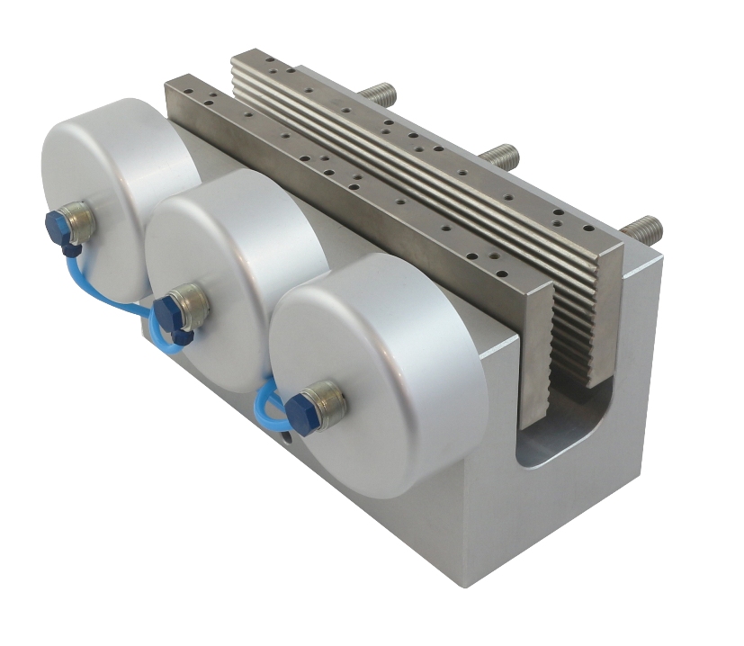 With pneumatic rods and wave jaws