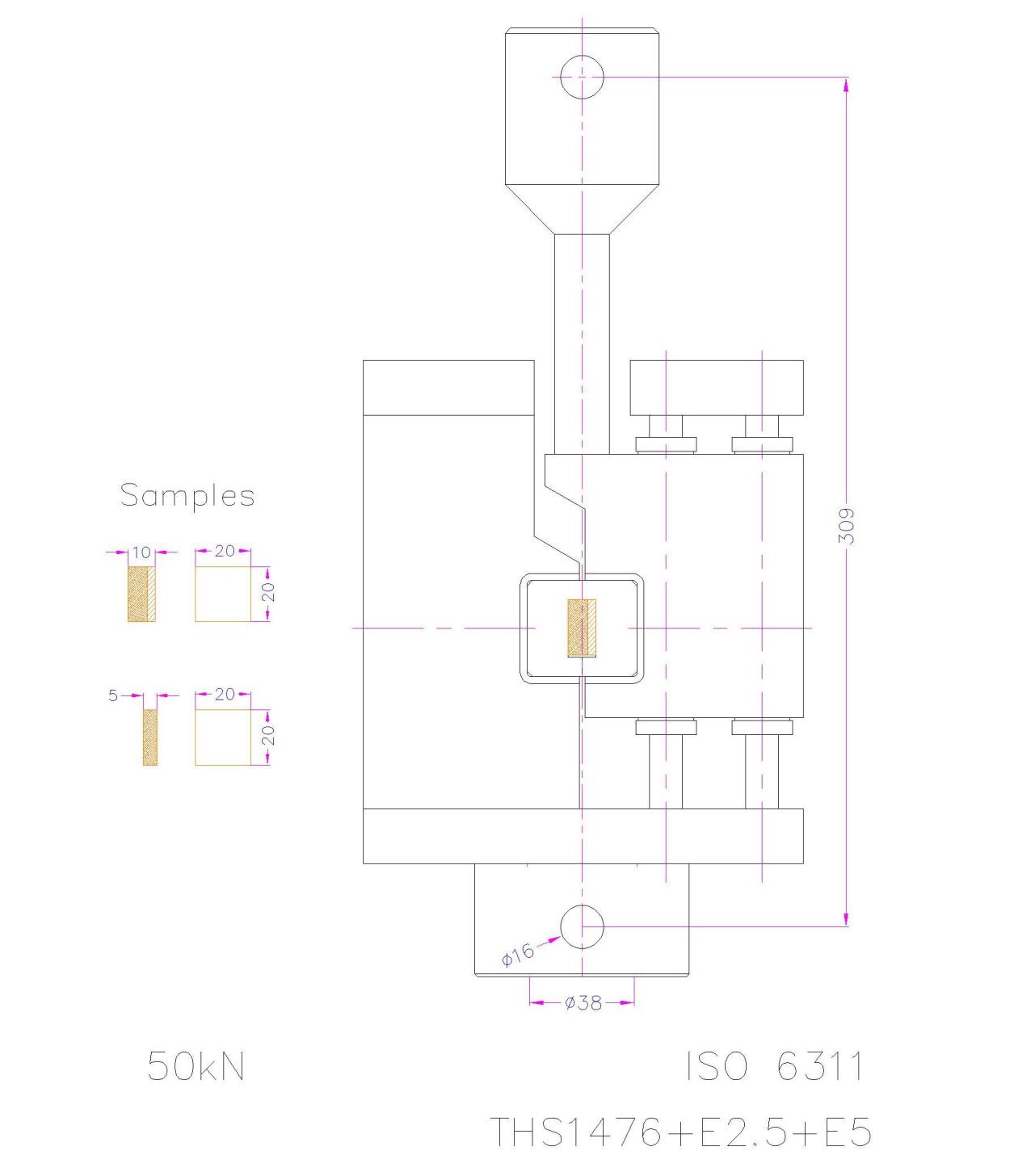 THS898-20-ISO6312 Shear test fixture for disc brake pad and drum brake shoe assemblies |