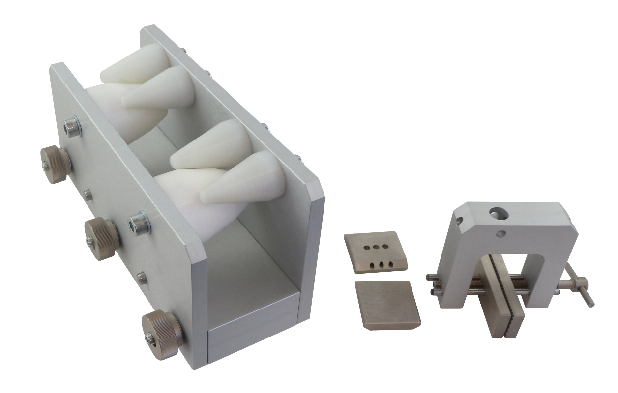 THS1342-V2 Egg tray test fixture with special upper vise grip Max. load 100 N Aluminium, anodized Coupling Af159 |