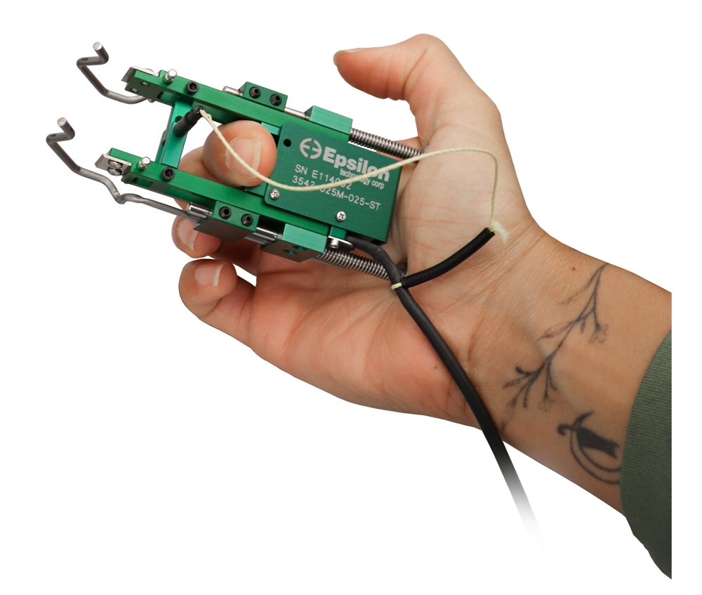 Epsilon-3542-025-025-ST Gauge length: 25 mm Measuring range: +25%/-10% (+6.25/-2.5 mm) Temperature range: -40 to 210 °F Messlänge: 25 mm Messbereich: +25% / -10% (+6,25 / -2,5 mm) Temperaturbereich: -40 bis 100 °C |
